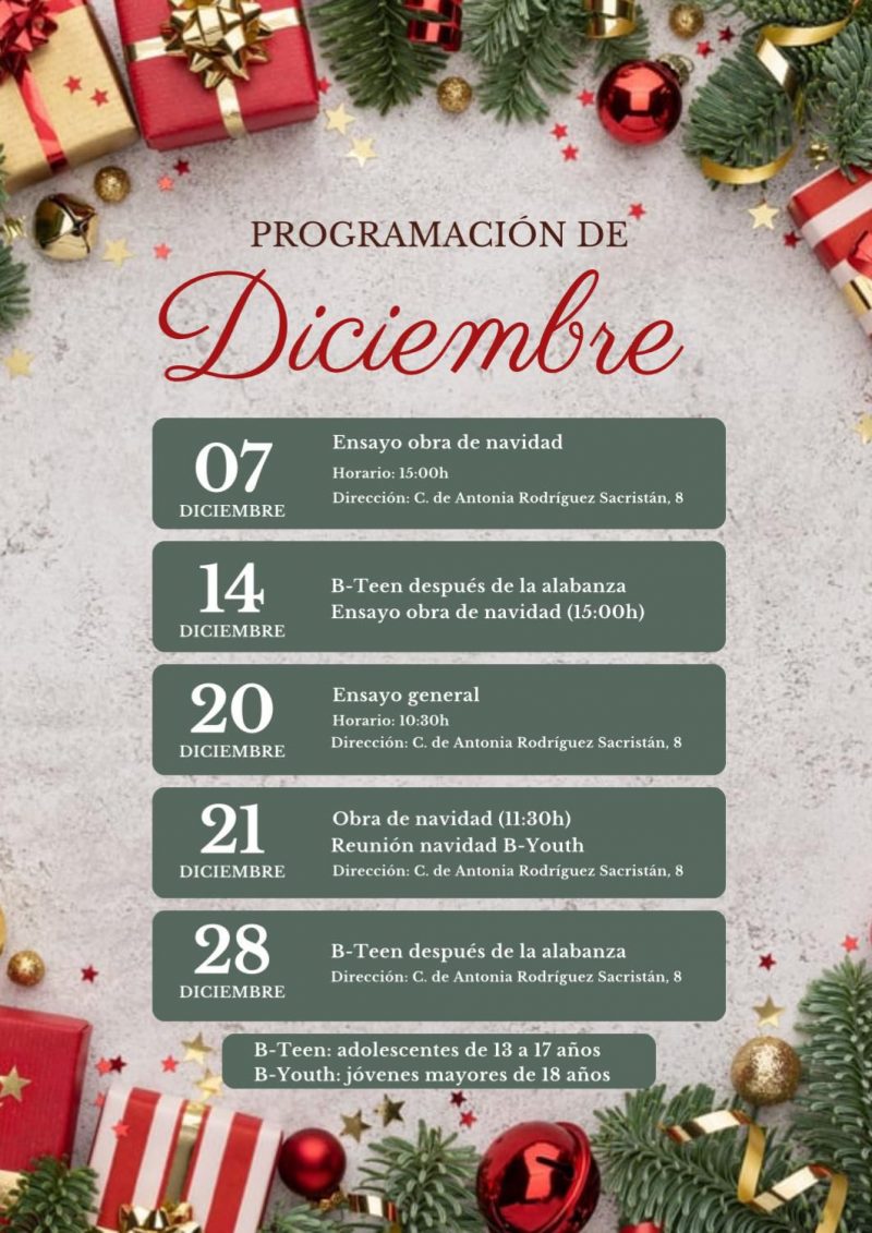 Próxima reunión:21 de diciembre a las 10:45 en la escuela dominical (Aula 1)